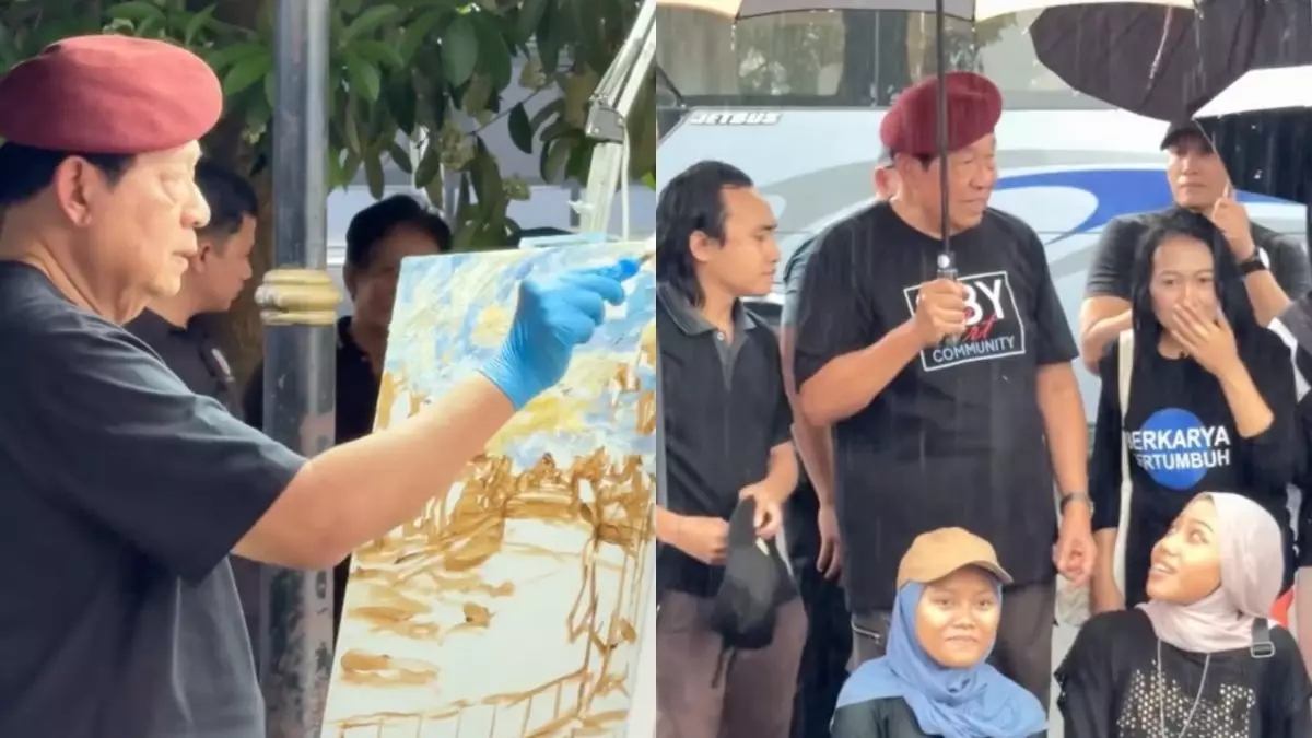 Saat proses melukis berlangsung, hujan tiba-tiba turun di lokasi. Bukannya merasa terganggu, SBY justru memaknai fenomena alam tersebut secara positif.